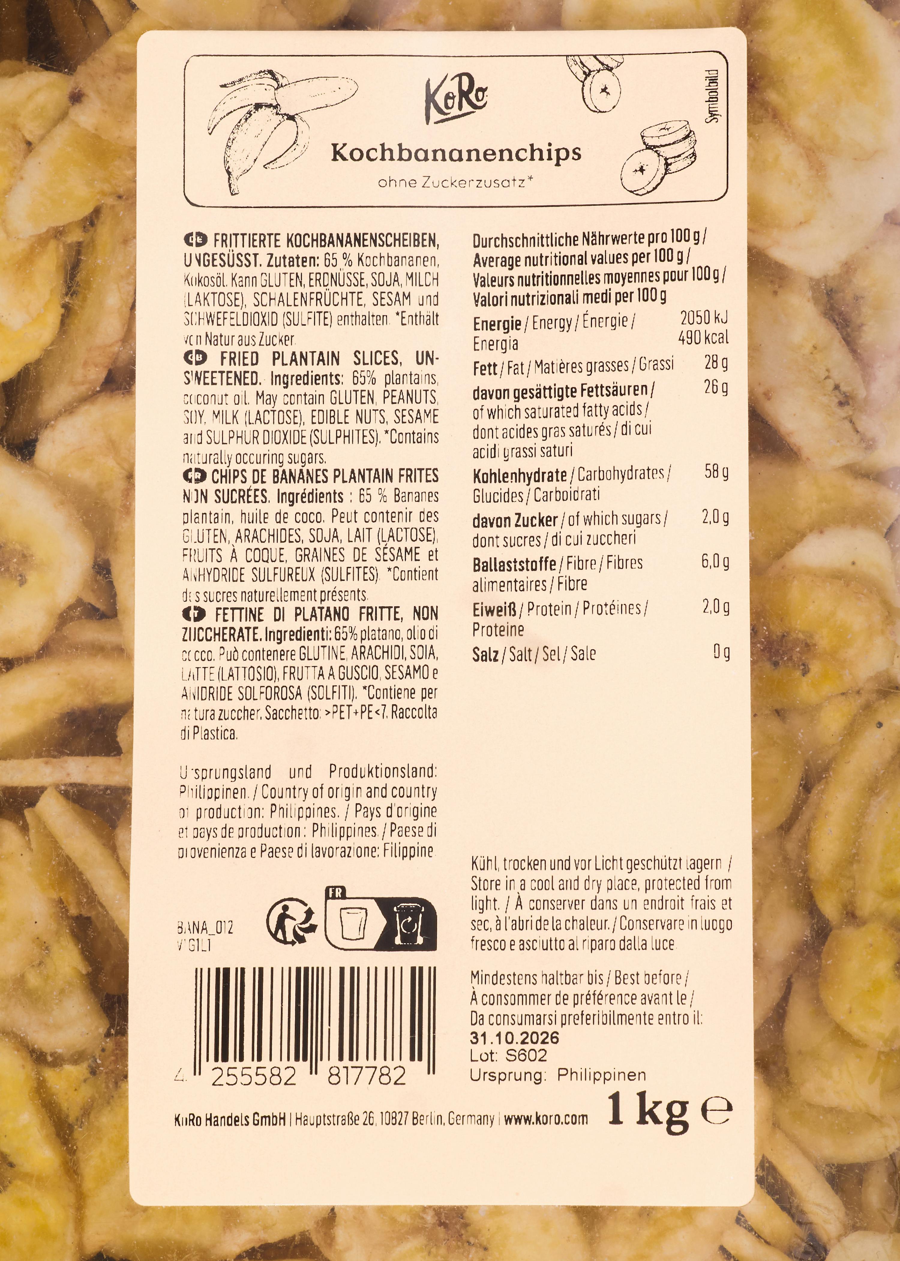 *Le chips di platano essiccate contengono naturalmente zuccheri.
